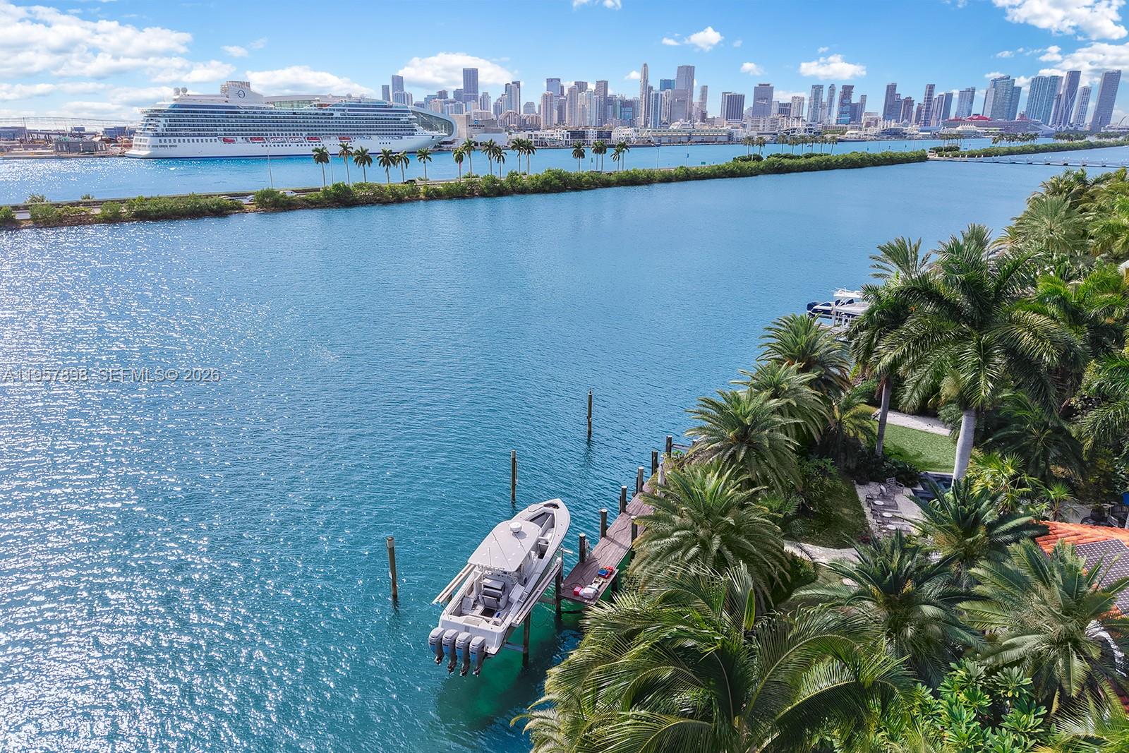 PALM ISLAND PB 6-54 LOTS 26 & 27 BLK 1 LOT SIZE 35348 SQ FT OR 15651-0683 0992 1 COC 26255-2008 03 2008 1 Step Inside With Me! This Palm Island Estate spans over 35,000 SF of prime waterfront land with an extraordinary 220 linear feet on Biscayne Bay. 16 Palm is a monumental parcel of true magnitude offering the potential to enhance the existing Mediterranean Revival home (see renderings) or create a new 17,500 SF modern mansion. The choice is yours! A trophy residence can be achieved here within one of Miami Beach’s most exclusive gated island communities. The present-day home, renovated in 2009, welcomes you with sun-filled interiors, lush courtyards, and grand entertaining spaces. Additional amenities elevate the residence with a theater, gym, dual steam rooms, and a wine cellar. With Southeast exposure and captivating downtown skyline views, the site allows for a visionary new construction or a significant expansion of the existing structure. Live minutes to South of Fifth and in close proximity to Downtown Miami while enjoying Palm Island's rare amenities: playground, tennis and basketball courts.