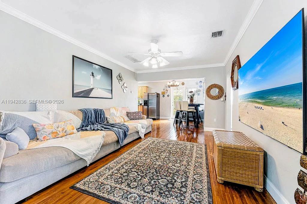 CLEVELAND TERRACE FIRST ADD 18-7 B LOT 1 BLK 4 & POR OF N1/2 OF VAC ROOSEVELT ST LYING S & ADJ TO SAID LOT BY OR 34048/1543 Experience the perfect blend of charm and convenience in this stunning Hollywood Lakes District residence. Located east of Federal Highway, you are just minutes away from the vibrant energy of Young Circle, pristine local beaches, premier shopping, and a quick 10-minute commute to the airport. The home itself has been meticulously updated, featuring a remodeled kitchen and bathroom, freshly painted interiors and exteriors, and elegant crown moldings that complement the beautifully refinished hardwood floors. For those needing extra versatility, the garage includes a functional built-in room perfect for an office or storage.