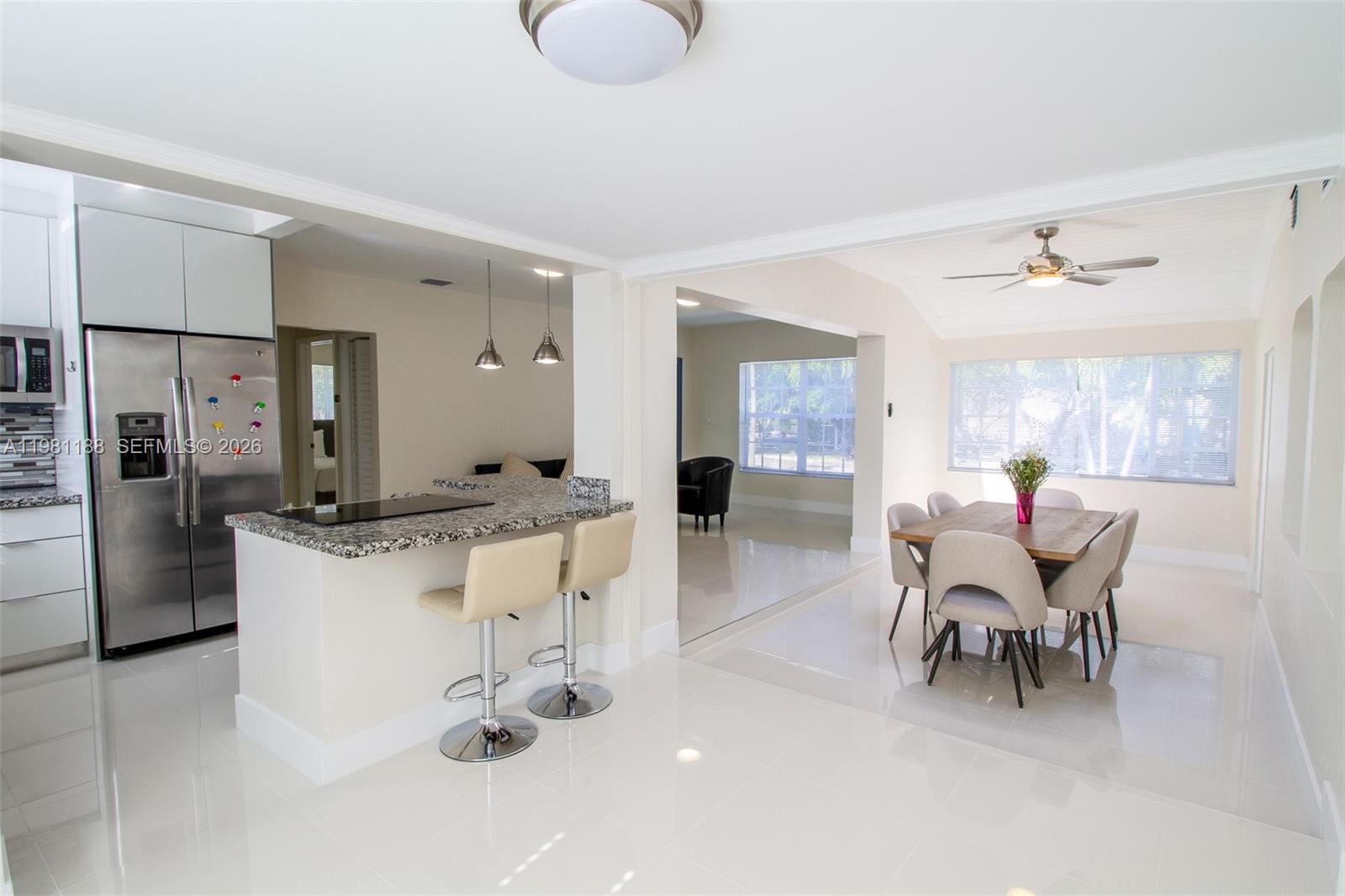 SILVER BLUFF EST SEC C PB 10-65 LOTS 49 - 50 - 51 BLK 44 LOT SIZE 5924 SQUARE FEET OR 20317-1878 03/2002 1 COC 21410-2757 07 2003 1 Beautiful 4-bedroom, 3-bath pool home in North Grove area, turn-key and ready for immediate move-in. This newly remodeled residence features a well-designed split floor plan with updated bedrooms & bathrooms. The primary suite includes a spacious bathroom w/ both a tub and separate shower. The open-concept kitchen offers granite countertops, stainless steel appliances, and a convenient snack counter, perfect for casual dining & entertaining. Bright dining & the Florida room areas are filled with natural light thanks to skylights and glass door that open to the outdoor space. The home is tiled throughout & equipped w/ impact windows for added comfort & security. Situated on a corner lot, the property features a heated pool & fully fenced backyard, ideal for relaxing or entertaining. Excellent location just minutes from Coral Gables, Brickell, Key Biscayne, Miami International Airport, and the beautiful Miami Beaches.