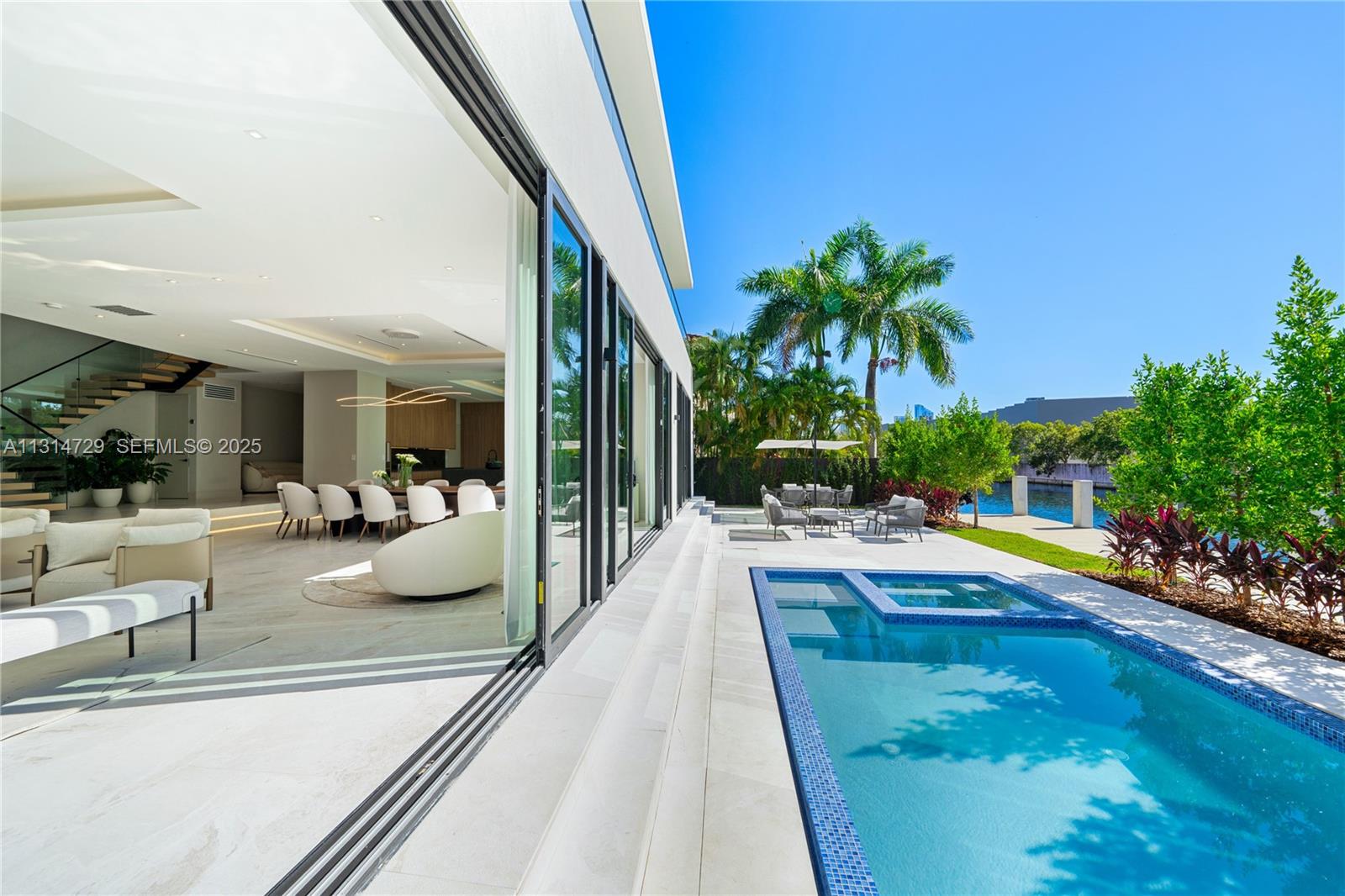 EASTERN SHORES PB 65-28 LOT 121 BLK 5 LOT SIZE IRREGULAR CF 74R-6571 NEW BUILD ORGANIC MODERN WATERFRONT ESTATE IN THE HEART OF EASTERN SHORES! Modern Tropical Oasis in Light Natural Wood Encompassing 5 Bedrooms + 5 Baths + Powder Room in 5,796 Interior SF on 8,800 SF LOT with 80 FT of Waterfrontage. Enter into Open Floorplan with Calacatta Marble on Ground Floor. Enjoy Expansive Entertaining Spaces + Wine Cellar & Direct Water Views. Organic Wall Textures Throughout. Staircase Leads to Spacious Primary Suite Overlooking the Water. Custom Italian Kitchen Accented with Organic Light Wood with Oversized Island Countertop. Primary Bath with Hansgrohe & Duravit Fixtures + Rainshower. Deck Perfect for Entertaining with Heated Pool & Summer Kitchen. Minutes Away from Sunny Isles Beach, Aventura Mall, Dining & Oleta River State Park. Delivers Q2 of 2025.