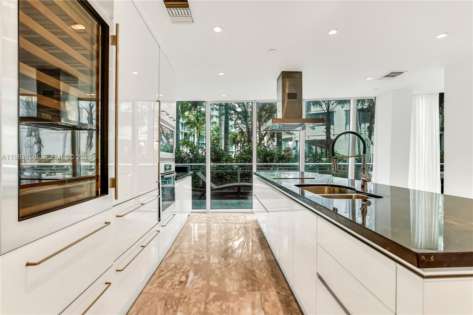 Step inside this beautifully designed midrise unit and be greeted by floor-to-ceiling windows that fill the space with natural light, highlighting the elegant marble floors. The open-concept layout includes a chef’s kitchen complete with a spacious island, wine cooler, breakfast nook, and top-of-the-line appliances, including a dishwasher. A private wrap-around terrace and patio provide the perfect setting for barbecue, private tanning, basketball area, play ground, outdoor dining and entertaining while offering serene water and garden views.