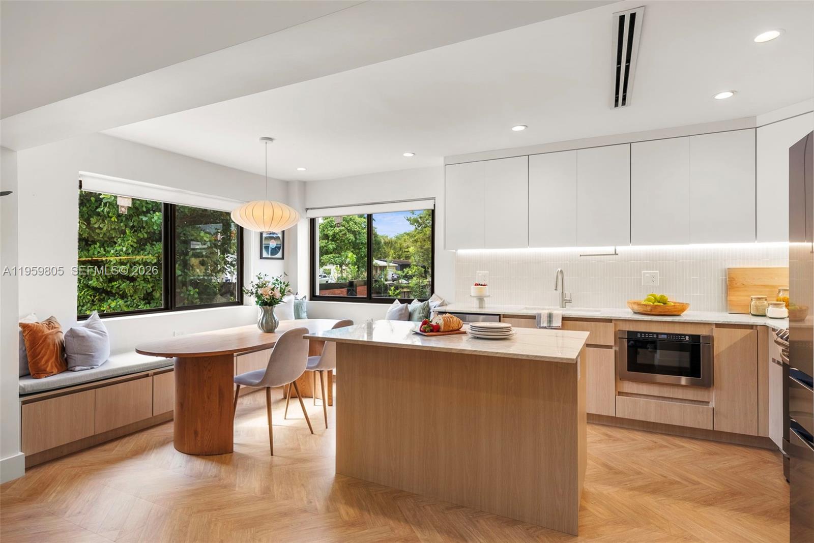 31 52 42 HALOCK SEC 1 PB 46-24 LOT 14 BLK 3 LOT SIZE 67.000 X 125 OR 11381-1124 0382 1 Thoughtfully updated and design-driven, this refined residence offers 3 bedrooms, 3 full bathrooms, and a private office, renovated with bespoke finishes that balance effortless style, comfort, and modern convenience. Impact-resistant windows, a Level 2 electric vehicle charger, and fully upgraded systems throughout deliver elevated style with long-term peace of mind. The open kitchen anchors the home with a gas range, custom cabinetry, dolomite countertops, stainless steel appliances, and a built-in dining nook. Natural light flows through multiple living areas, creating an open yet intimate feel with generous storage throughout. Spa-inspired bathrooms evoke a calm, hotel-like experience, while the split floor plan provides privacy for each bedroom with custom closets. A dedicated office offers flexible space for work or retreat. Covered front and rear patios extend the living space outdoors, where lush greenery and mature banyan trees provide privacy and shade. The expansive, irrigated yard offers space for a future pool. Tucked into a tranquil residential pocket near Miami Country Day School, with easy access to Biscayne Boulevard, Miami Shores, Downtown Miami, and the Design District. This turn-key home offers the perfect balance of urban energy and residential tranquility, a statement of modern elegance and craftsmanship.