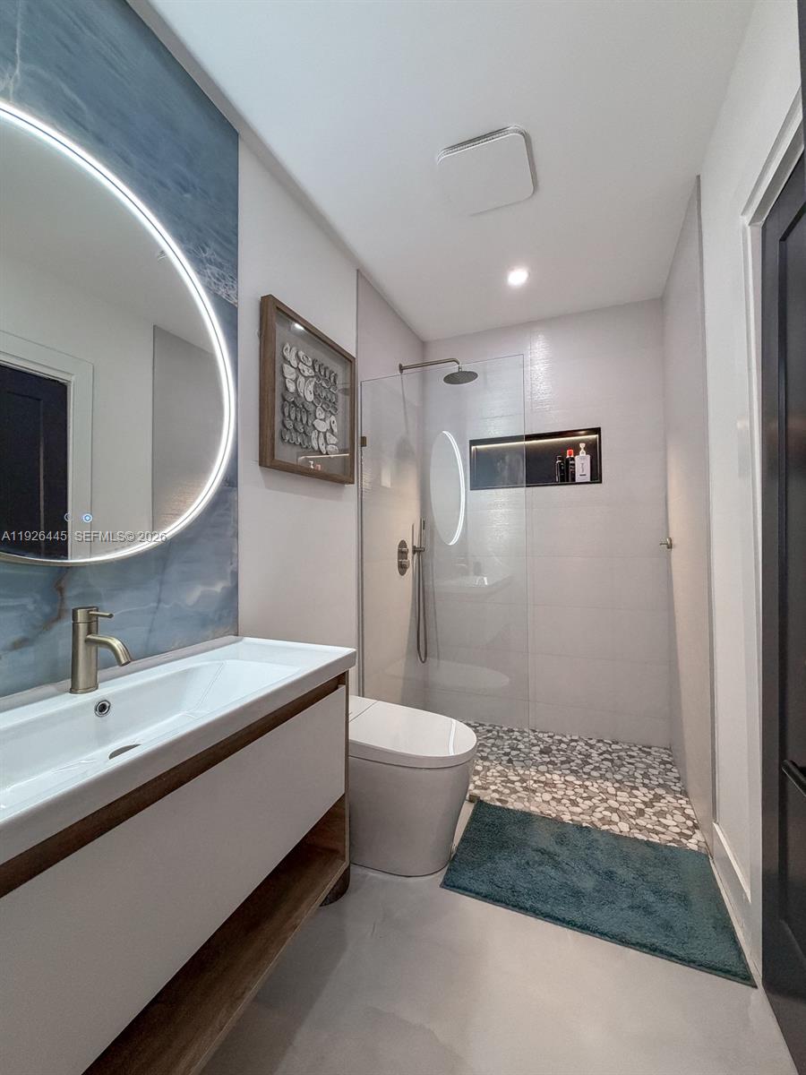 The Italian-style kitchen features stainless steel Dacor appliances, quartz countertops, and ample storage. Upgraded bathrooms include luxury fixtures, smart toilets, and anti-fog mirrors. Enjoy a custom wood-accent wall in the living area, 36 x 72 porras porcelain in main spaces, wood-look vinyl in bedrooms, impact windows, and a newer roof. The backyard is an entertainer’s dream with two outdoor kitchens, pergola with TV and EV charger. 2020 & 2021 AC’s, salt system heated pool. No HOA. Prime location. Call today for a private tour!